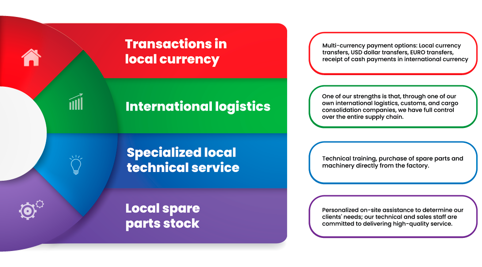 At BULKRO, we understand that the efficiency and performance of packaging line machines are essential to the success of your operation. That’s why we have a highly trained and specialized technical team, ready to provide comprehensive service nationwide.